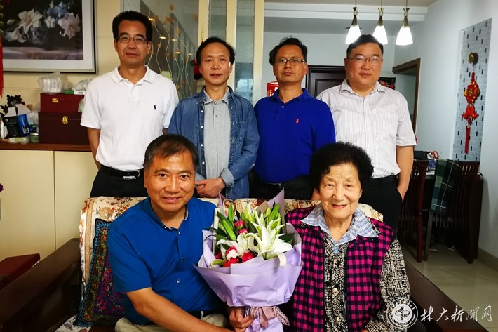 2018年6月2日,杜红岩(前排左一)回母校和他当时的博士同学们看望80岁的老师谢碧霞教授