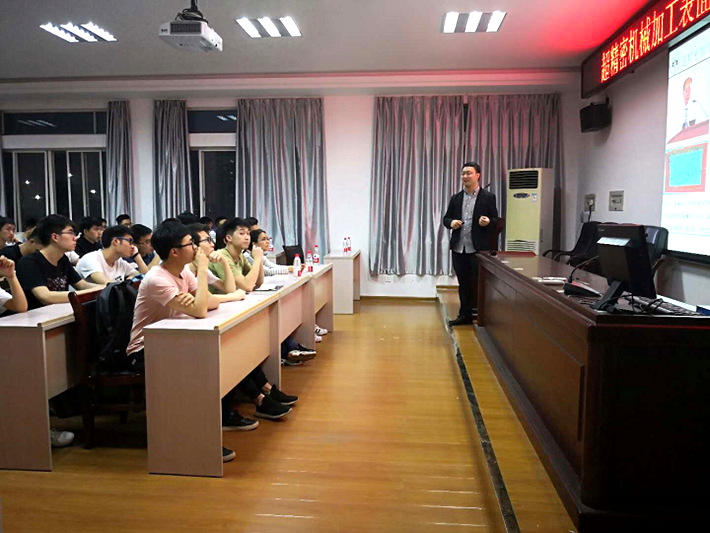 讲座中,李甲深入浅出的介绍了自己团队主要研究方向 ——“超精密机械加工表面创成及亚表面损伤机理”,并详述了该研究的实践应用。与此同时,李甲结合自身求学经历,与师生分享了他在研究生学习期间的一些趣事、际遇和挫折,大致描述了国内外学术界的区别。他强调,大学生要有自己的人生追求,要努力实现自己的社会价值,担当时代赋予的使命,他鼓励大家学习务必要打好基础,不怕困难,为继续深造做好准备。互动环节,同学们就考研方向等共同关心的事情提出问题,李甲先生耐心地进行了解答。