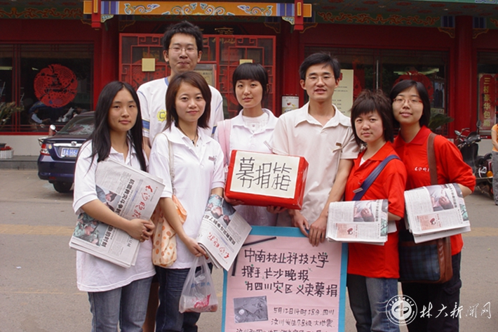 吕振伟(右三)参加学记团为四川灾区组织的义卖募捐活动